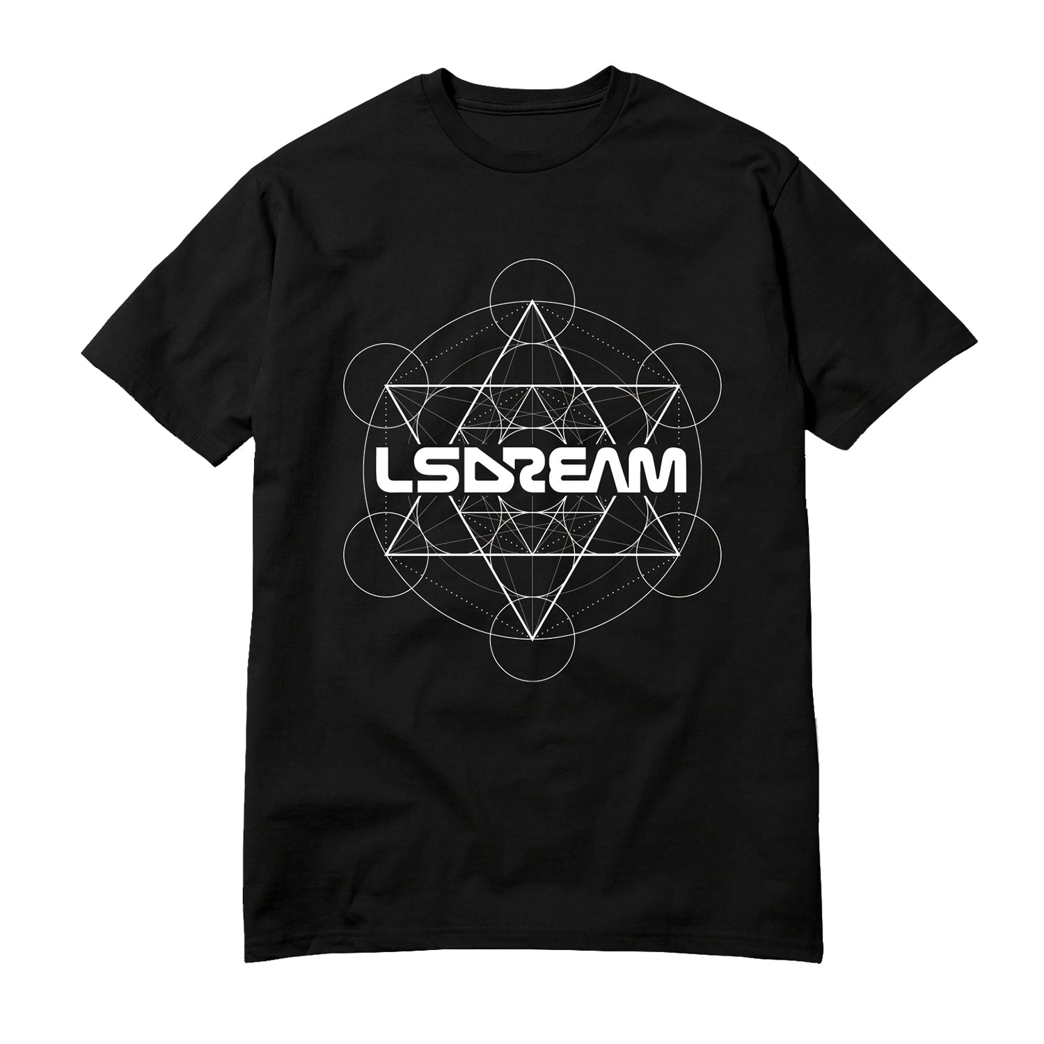 Black unisex heavyweight tee with LSDREAM Logo Metatron's Cube Graphic. 100% ring spun cotton. Relaxed fit.
