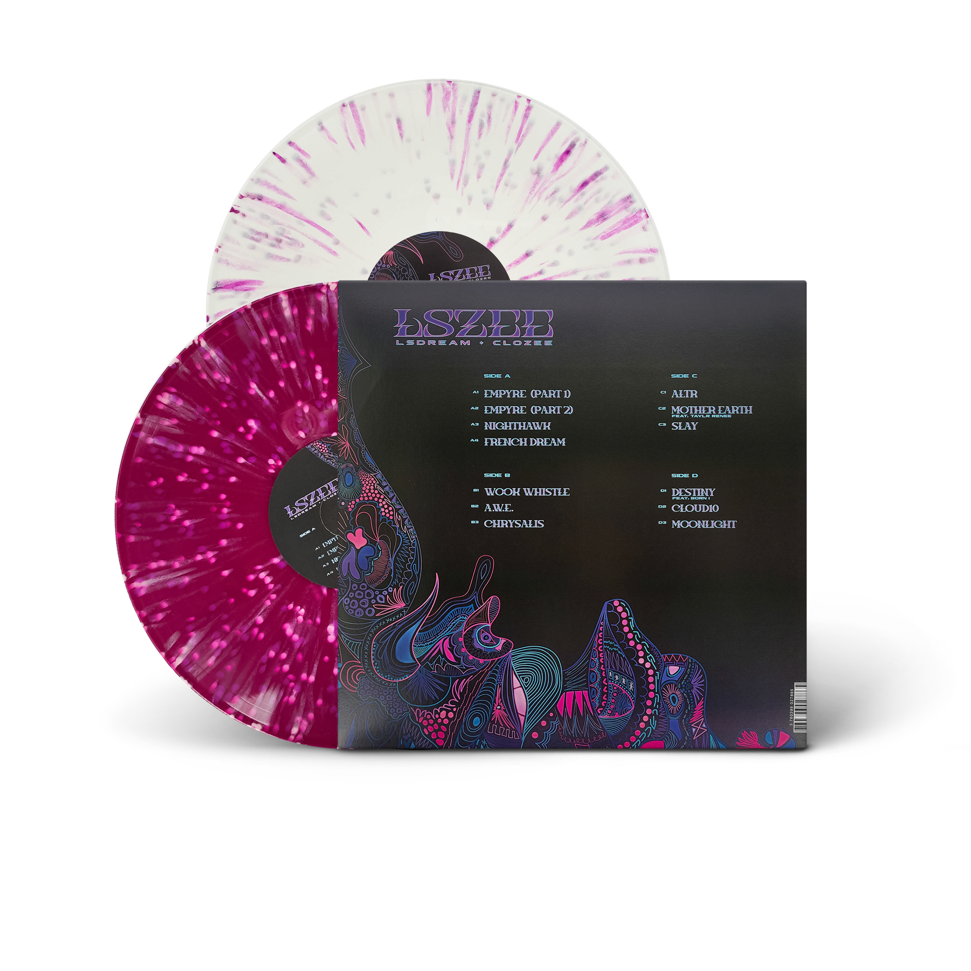 Double LP of LSZEE's self titled album on maroon splatter and white/pink splatter 140g vinyl. 45 RPM.